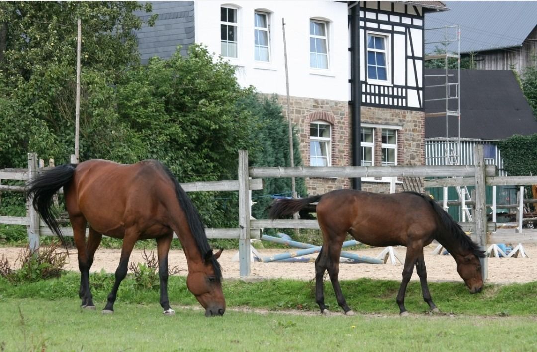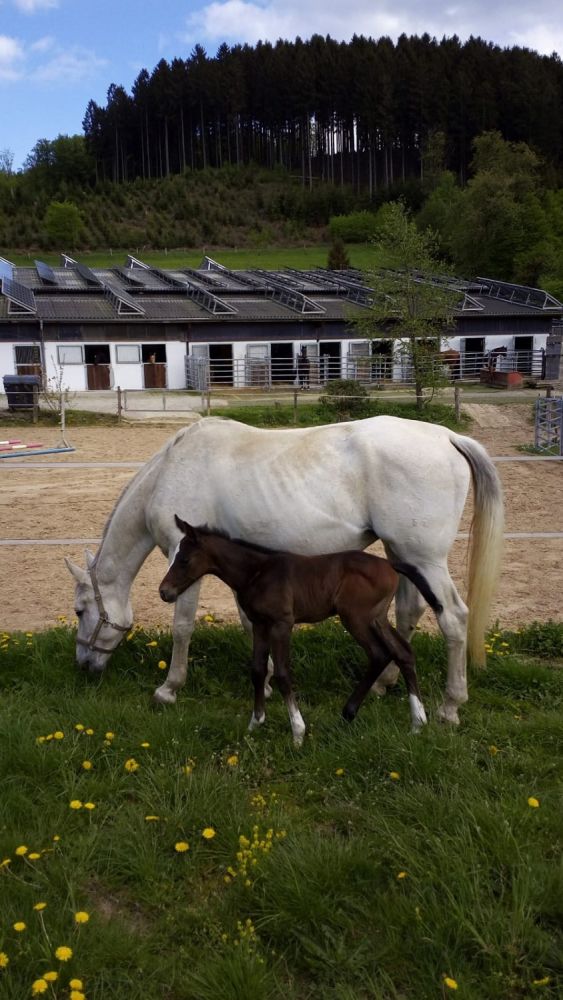 Haben Sie ein Foheln und wissen nicht wo es mit anderen Artgenossen zusammen aufwachsen kann? Wir bieten einen großzügen Offenstall in dem die Pferdekinder sich austoben können. Zudem stehen den kleinen eine überdachte Futterraufe zur Verfügung. Im  Sommer kommen die Fohlen auf eine große Sommerwiese. Eine Frischwasserquelle an der Wiese versorgt die Jungtiere mit ausreichend Wasser. Die Bäume an der Wiese bieten Schutz vor der Sonne.
